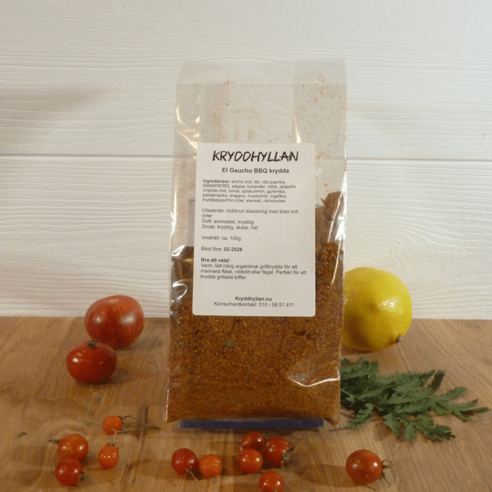 Argentinsk BBQ-krydda ”El Gaucho” med mild ancho chili och rökt spansk paprika samt mexikansk jalapeño chipotle chili och många andra aromatiska kryddor, kryddade med en touch av rårörsocker.