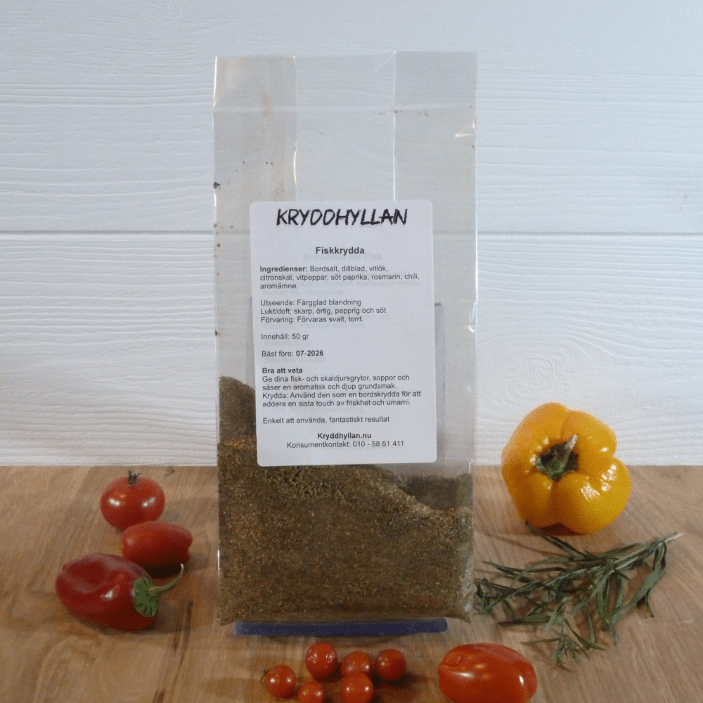 Glöm krångliga recept och otaliga burkar. Med vår Fiskkrydda är det enkelt att få till den där djupa, balanserade smaken som får smaklökarna att jubla. Den är speciellt framtagen för att komplettera fiskens naturliga smak utan att ta över, och passar lika bra till den enkla vardagsmiddagen som till festmåltiden.