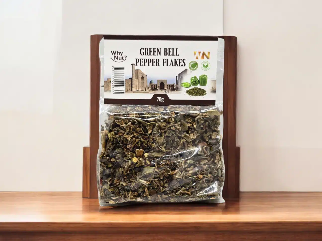Gröna Paprikaflingor är ett utmärkt sätt att lyfta smaken på dina rätter. Dessa soltorkade paprikabitar är gjorda av högkvalitativ grön paprika och ger en rik och aromatisk smak som förvandlar varje maträtt.