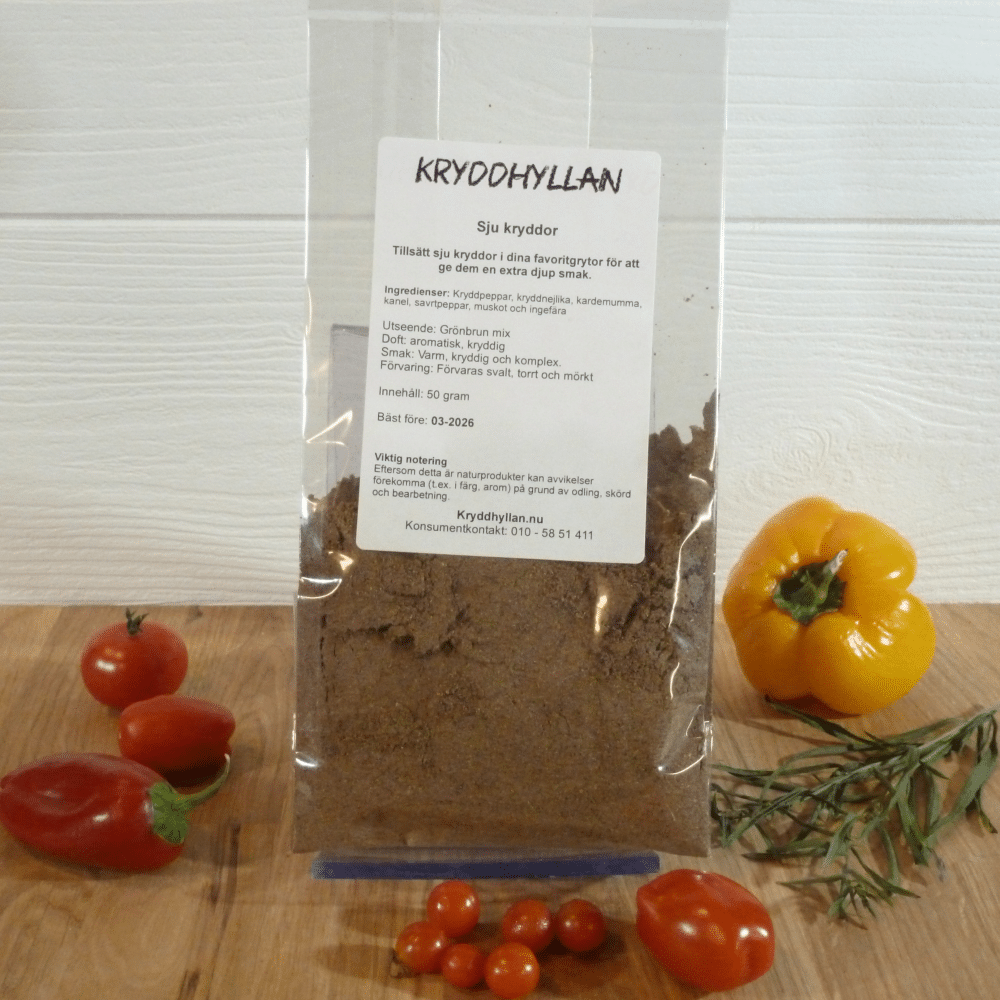 Sju kryddor är en klassisk blandning som är vanlig i hela Mellanöstern. Den ger dina rätter en djup och komplex smak. Perfekt för kött, fågel, grönsaker och grytor, såser samt till ris.