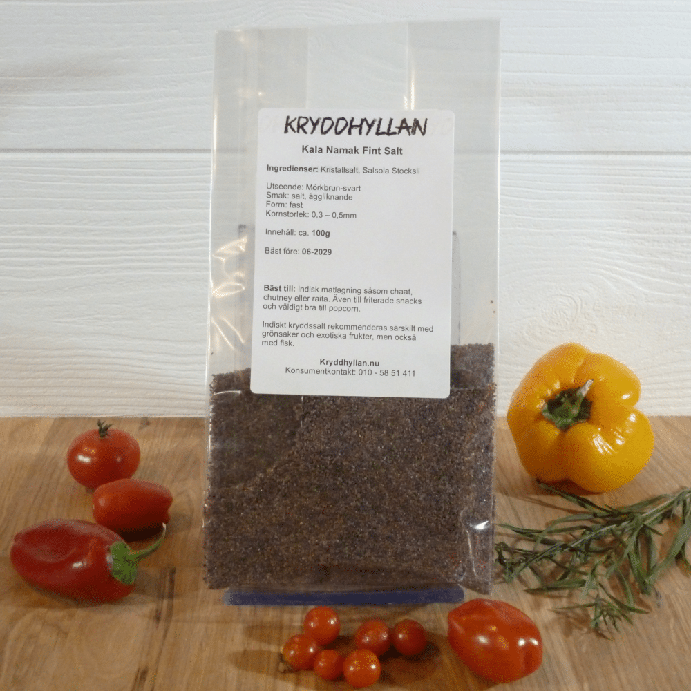 Kala Namak salt eller svart salt ger maten en ton av svavelsmak. I Indien är detta särskilt önskvärt för deras populära Raitas.
